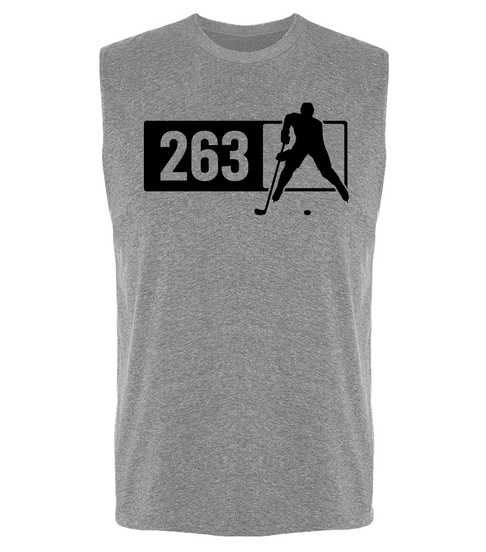 This premium sleeveless muscle shirt proudly displays the Quebec area code 263 in combination with our trademark silhouette. The fabric weight is 4 ounces and made from 100% polyester. Wash on cold and air dry.