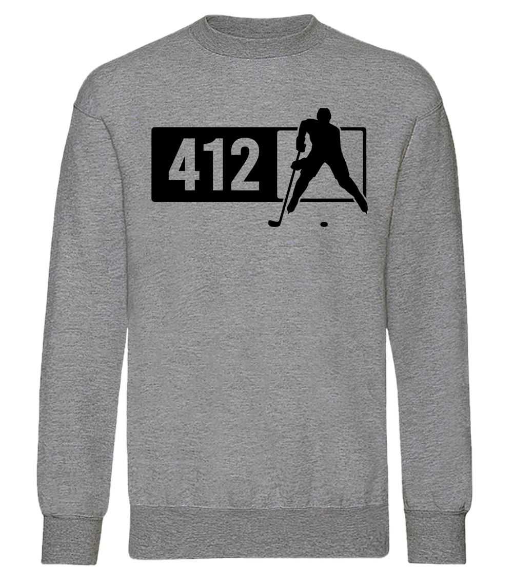 This premium blend sweatshirt proudly displays the Pennsylvania area code 412 in combination with our trademark silhouette. The fabric weight is 8.8 ounces and made from 65% ring spun cotton and 35% polyester. Wash on cold and air dry.