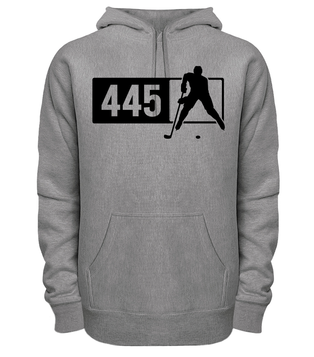 This premium blend hoodie proudly displays the Pennsylvania area code 445 in combination with our trademark silhouette. The fabric weight is 8.8 ounces and made from 65% ring spun cotton and 35% polyester. Wash on cold and air dry.