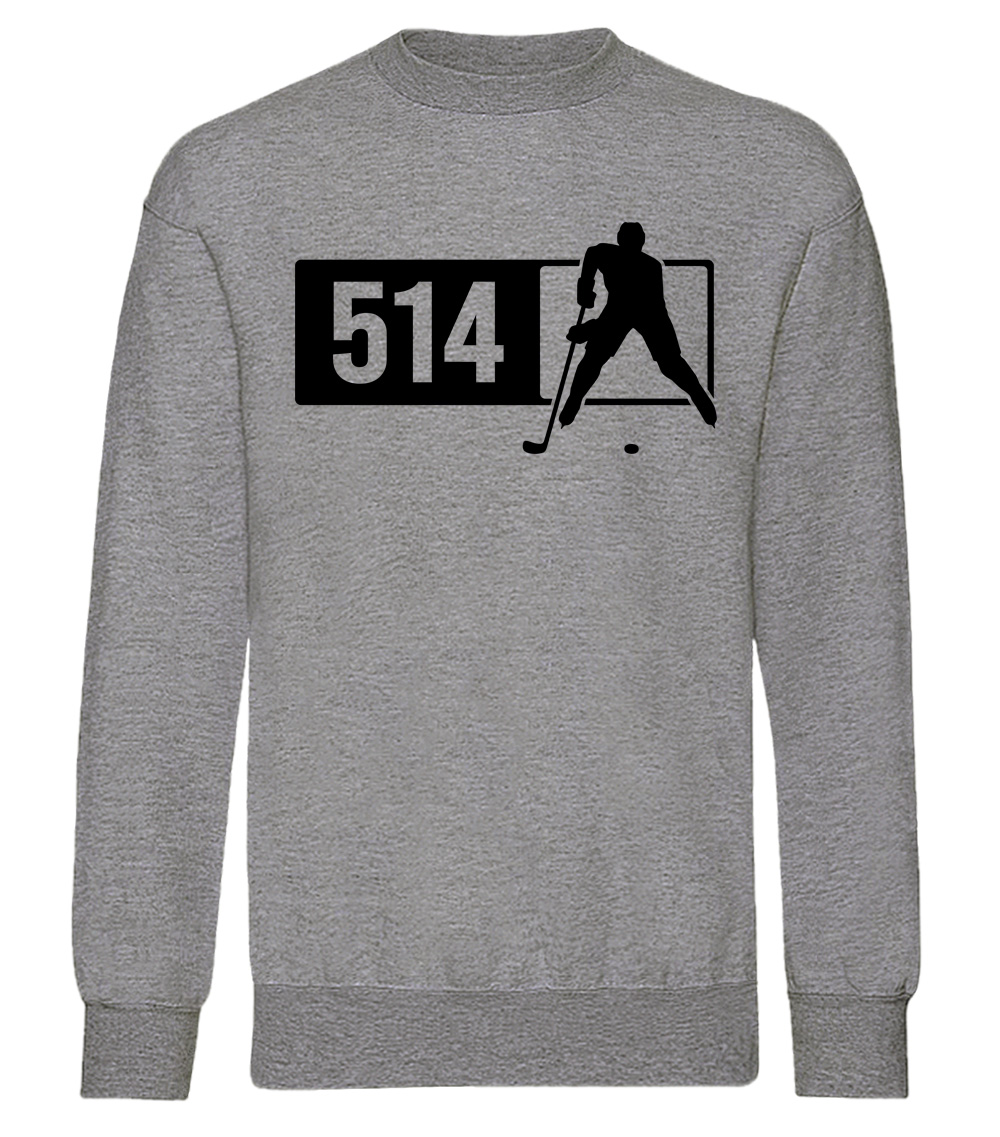 This premium blend sweatshirt proudly displays the Quebec area code 514 in combination with our trademark silhouette. The fabric weight is 8.8 ounces and made from 65% ring spun cotton and 35% polyester. Wash on cold and air dry.