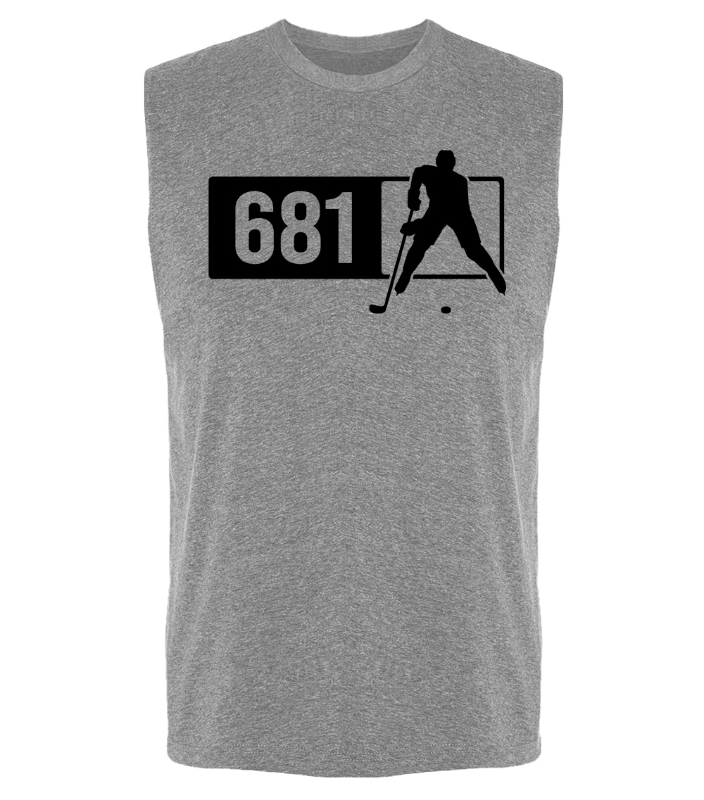 This premium sleeveless muscle shirt proudly displays the West Virginia area code 681 in combination with our trademark silhouette. The fabric weight is 4 ounces and made from 100% polyester. Wash on cold and air dry.