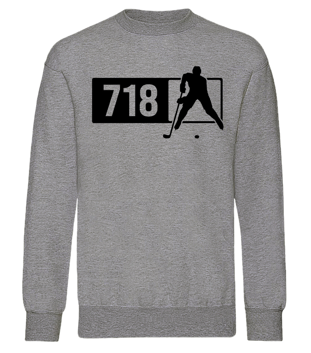 This premium blend sweatshirt proudly displays the New York area code 718 in combination with our trademark silhouette. The fabric weight is 8.8 ounces and made from 65% ring spun cotton and 35% polyester. Wash on cold and air dry.