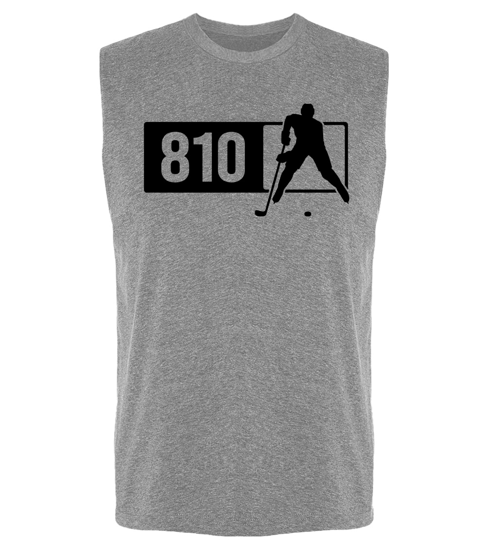 This premium sleeveless muscle shirt proudly displays the Michigan area code 810 in combination with our trademark silhouette. The fabric weight is 4 ounces and made from 100% polyester. Wash on cold and air dry.