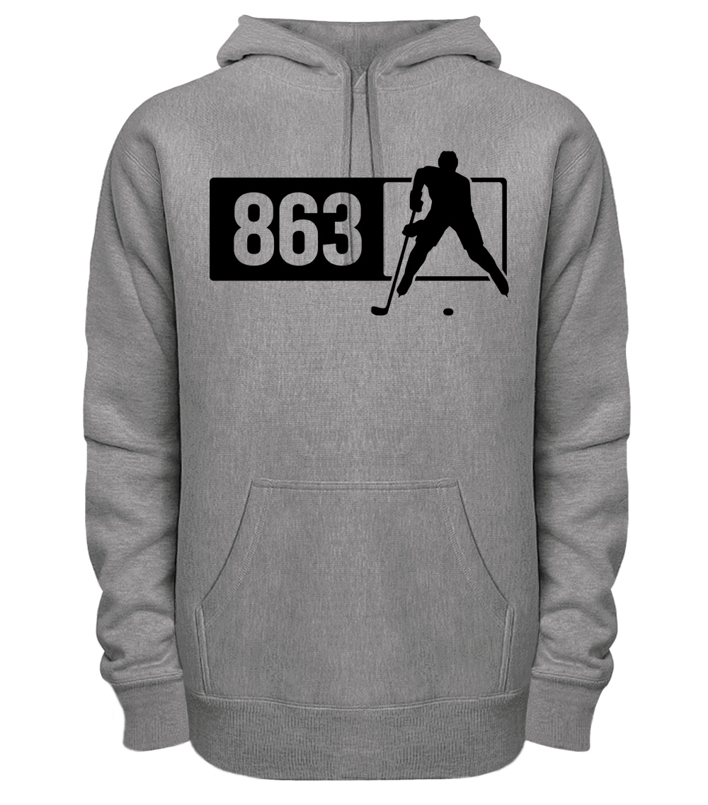 This premium blend hoodie proudly displays the Florida area code 863 in combination with our trademark silhouette. The fabric weight is 8.8 ounces and made from 65% ring spun cotton and 35% polyester. Wash on cold and air dry.