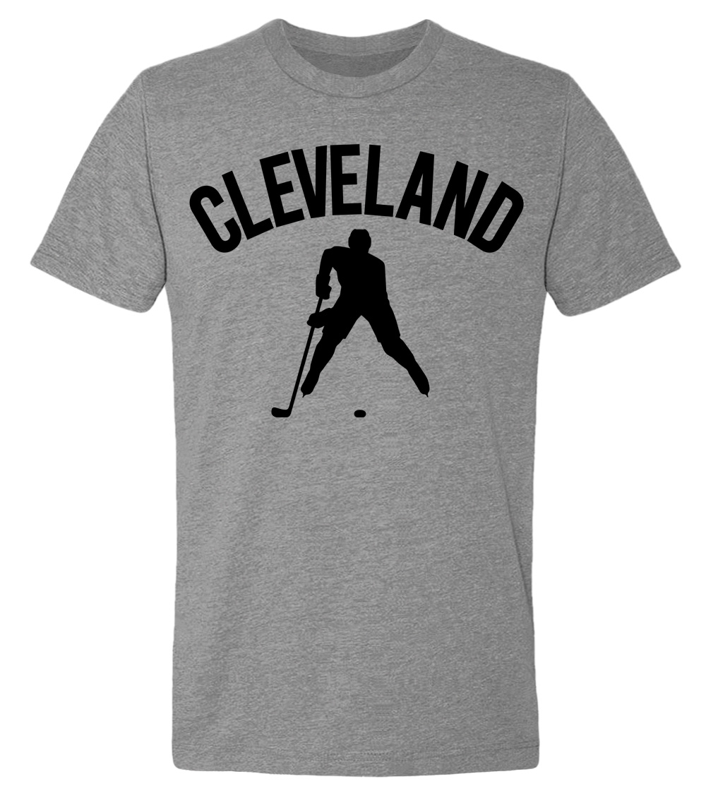 This premium tri-blend short sleeve shirt proudly displays the hockey loving city of Cleveland, USA in combination with our trademark silhouette. The fabric weight is 4.5 ounces and made from 25% ring spun cotton, 25% rayon, and 50% polyester. Wash on cold and air dry.