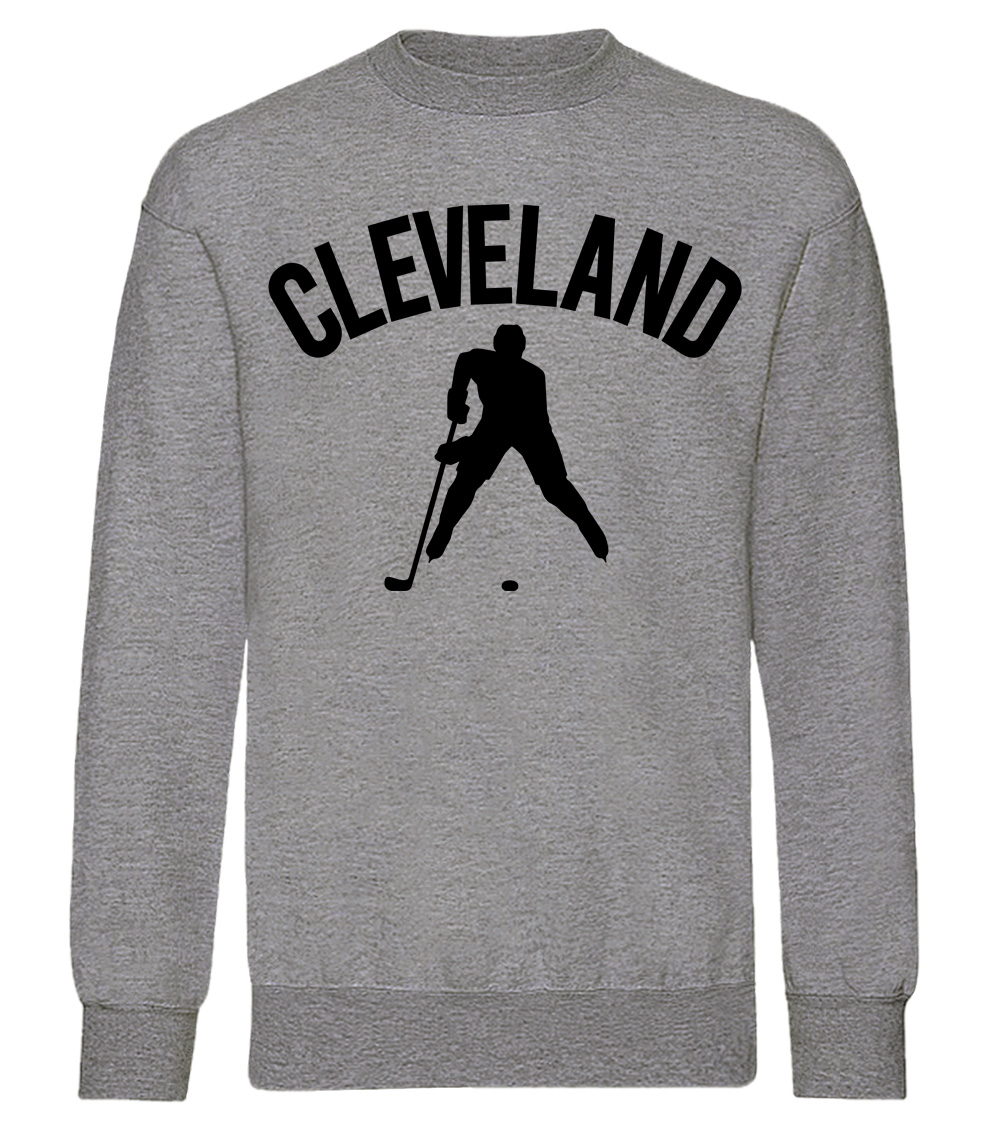 This premium blend sweatshirt proudly displays the hockey loving city of Cleveland, USA in combination with our trademark silhouette. The fabric weight is 8.8 ounces and made from 65% ring spun cotton and 35% polyester. Wash on cold and air dry.