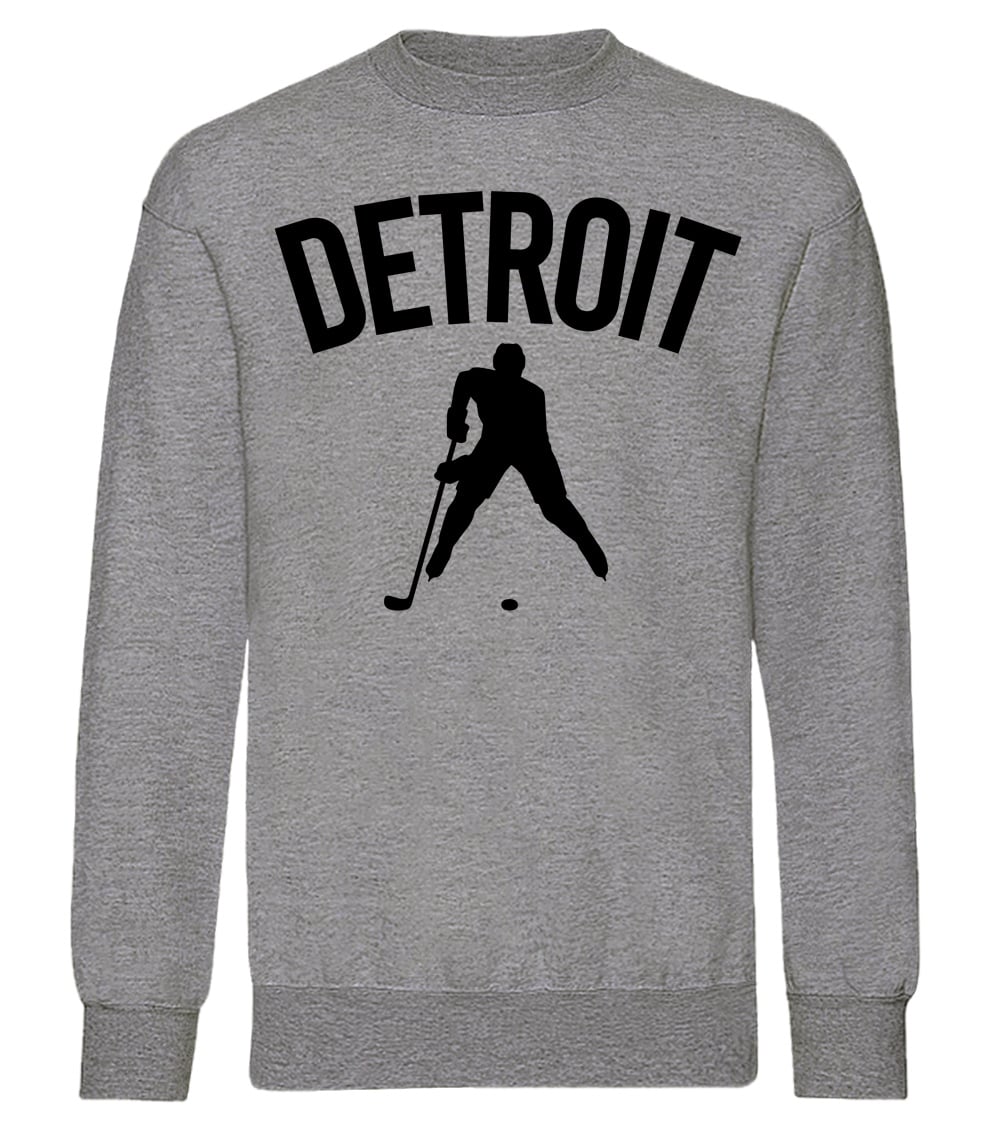 This premium blend sweatshirt proudly displays the hockey loving city of Detroit, USA in combination with our trademark silhouette. It's design #1 of 2 for Detroit. The fabric weight is 8.8 ounces and made from 65% ring spun cotton and 35% polyester. Wash on cold and air dry.