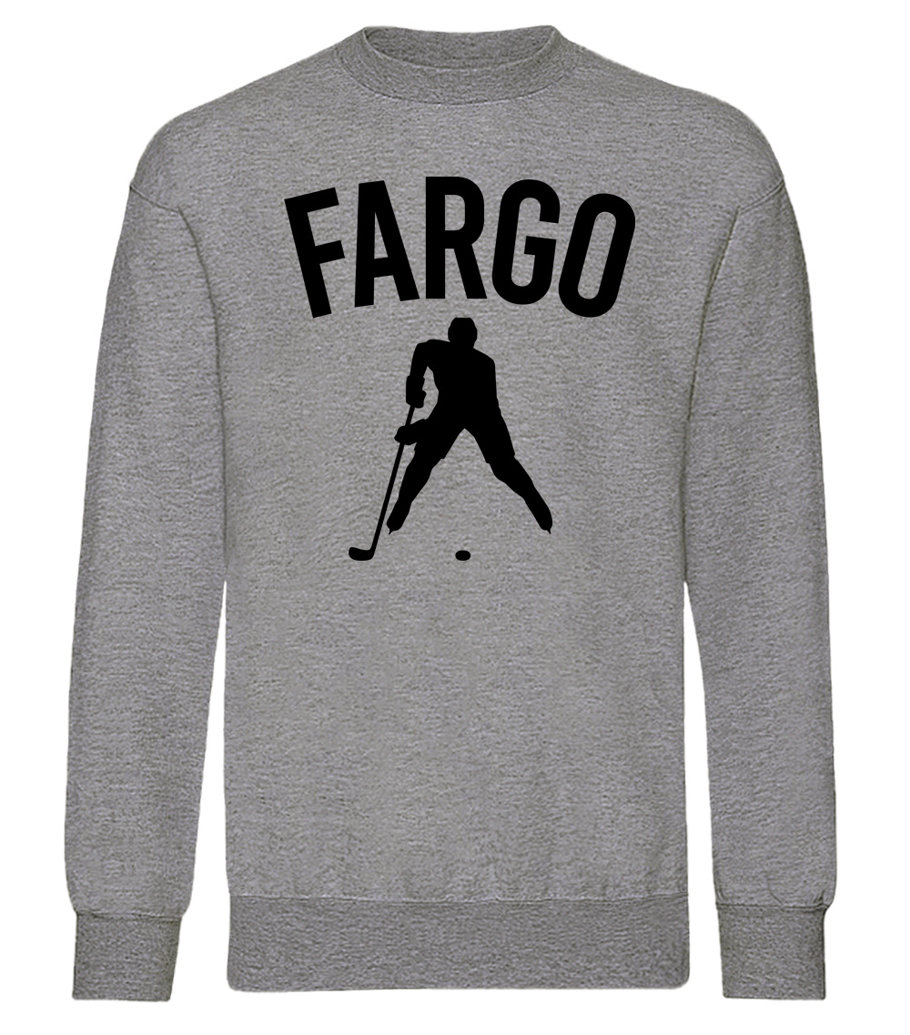 This premium blend sweatshirt proudly displays the hockey loving city of Fargo, USA in combination with our trademark silhouette. The fabric weight is 8.8 ounces and made from 65% ring spun cotton and 35% polyester. Wash on cold and air dry.