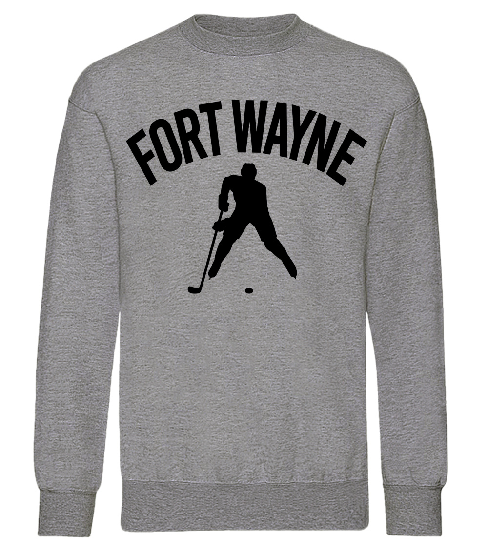 This premium blend sweatshirt proudly displays the hockey loving city of Fort Wayne, USA in combination with our trademark silhouette. The fabric weight is 8.8 ounces and made from 65% ring spun cotton and 35% polyester. Wash on cold and air dry.