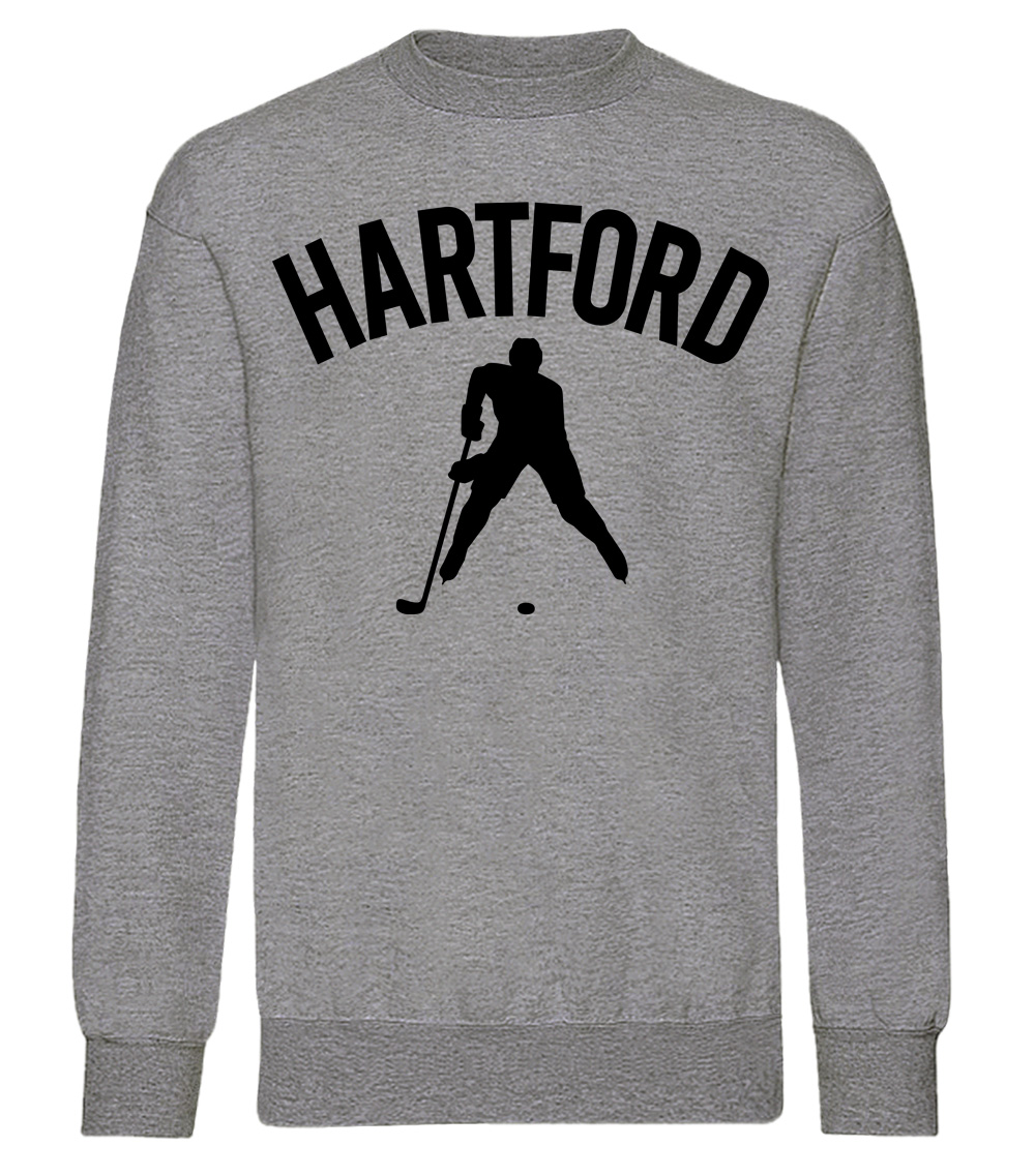 This premium blend sweatshirt proudly displays the hockey loving city of Hartford, USA in combination with our trademark silhouette. The fabric weight is 8.8 ounces and made from 65% ring spun cotton and 35% polyester. Wash on cold and air dry.