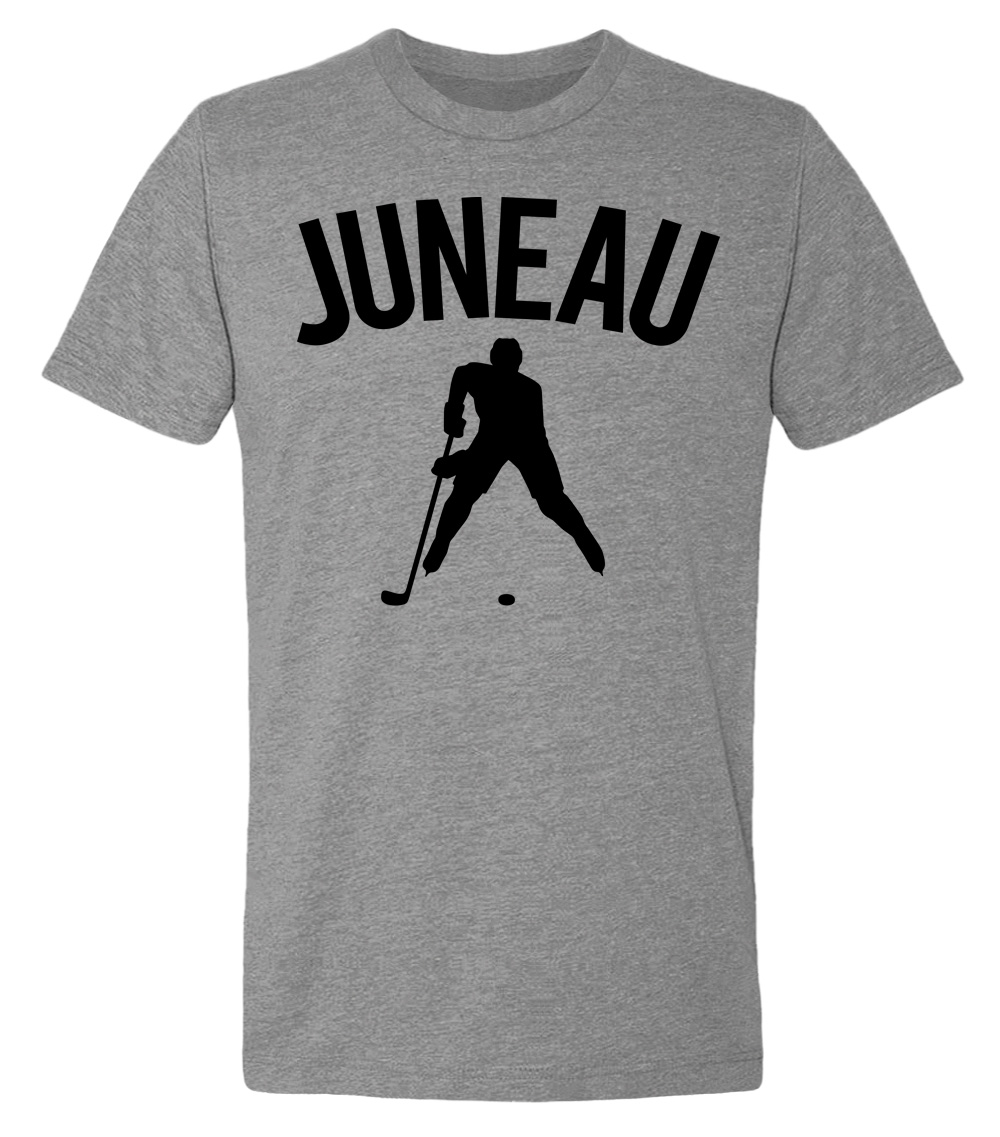 This premium tri-blend short sleeve shirt proudly displays the hockey loving city of Juneau, USA in combination with our trademark silhouette. The fabric weight is 4.5 ounces and made from 25% ring spun cotton, 25% rayon, and 50% polyester. Wash on cold and air dry.