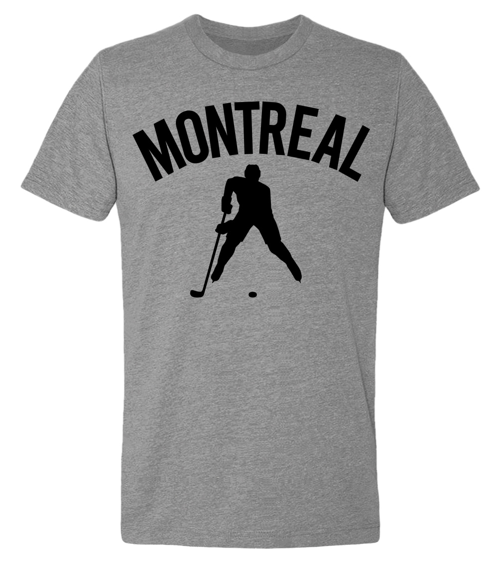 This premium tri-blend short sleeve shirt proudly displays the hockey loving city of Montreal, CANADA in combination with our trademark silhouette. The fabric weight is 4.5 ounces and made from 25% ring spun cotton, 25% rayon, and 50% polyester. Wash on cold and air dry.