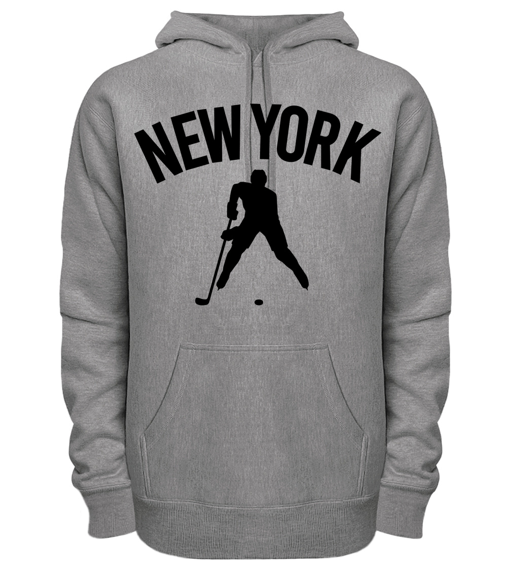 This premium blend hoodie proudly displays the hockey loving city of New York, USA in combination with our trademark silhouette. It's design #1 of 4 for New York. The fabric weight is 8.8 ounces and made from 65% ring spun cotton and 35% polyester. Wash on cold and air dry.
