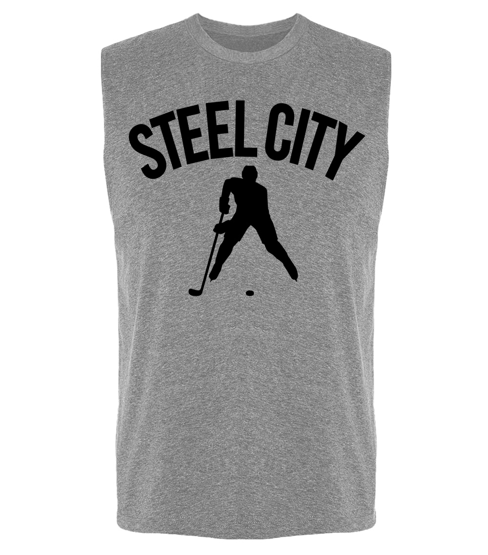 This premium sleeveless muscle shirt proudly displays the Pittsburgh, USA 'Steel City' design. It's design #2 of 2 for Pittsburgh. The fabric weight is 4 ounces and made from 100% polyester. Wash on cold and air dry.