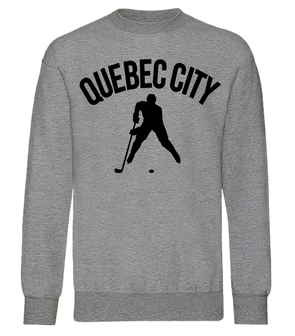 This premium blend sweatshirt proudly displays the hockey loving city of Quebec City, CANADA in combination with our trademark silhouette. The fabric weight is 8.8 ounces and made from 65% ring spun cotton and 35% polyester. Wash on cold and air dry.