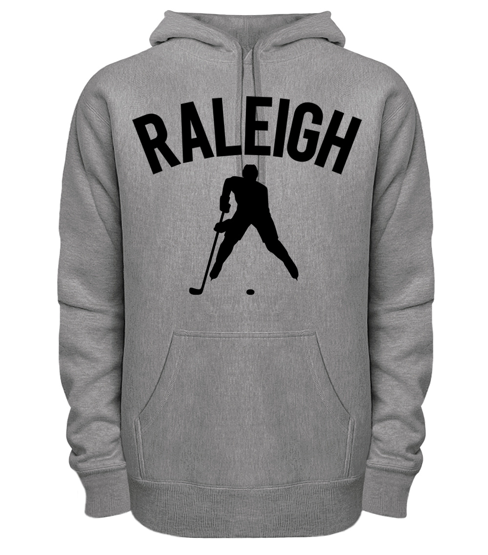 This premium blend hoodie proudly displays the hockey loving city of Raleigh, USA in combination with our trademark silhouette. The fabric weight is 8.8 ounces and made from 65% ring spun cotton and 35% polyester. Wash on cold and air dry.