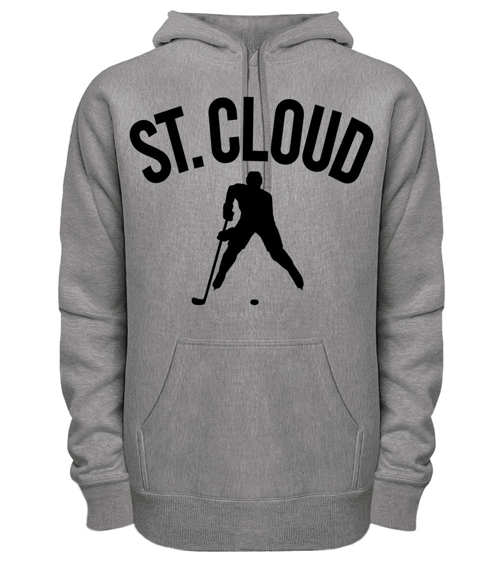 This premium blend hoodie proudly displays the hockey loving city of Saint Cloud, USA in combination with our trademark silhouette. The fabric weight is 8.8 ounces and made from 65% ring spun cotton and 35% polyester. Wash on cold and air dry.