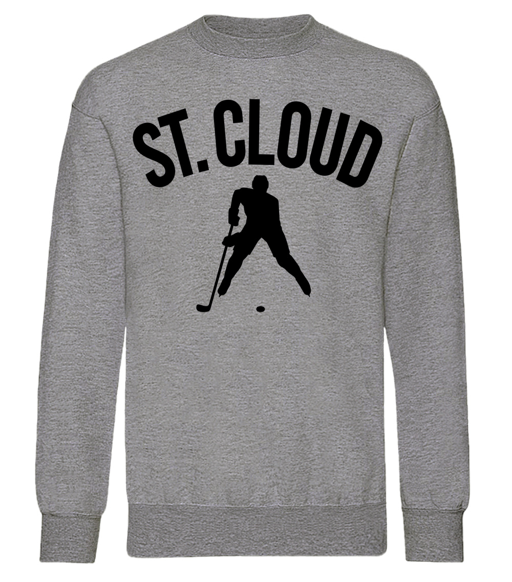 This premium blend sweatshirt proudly displays the hockey loving city of Saint Cloud, USA in combination with our trademark silhouette. The fabric weight is 8.8 ounces and made from 65% ring spun cotton and 35% polyester. Wash on cold and air dry.