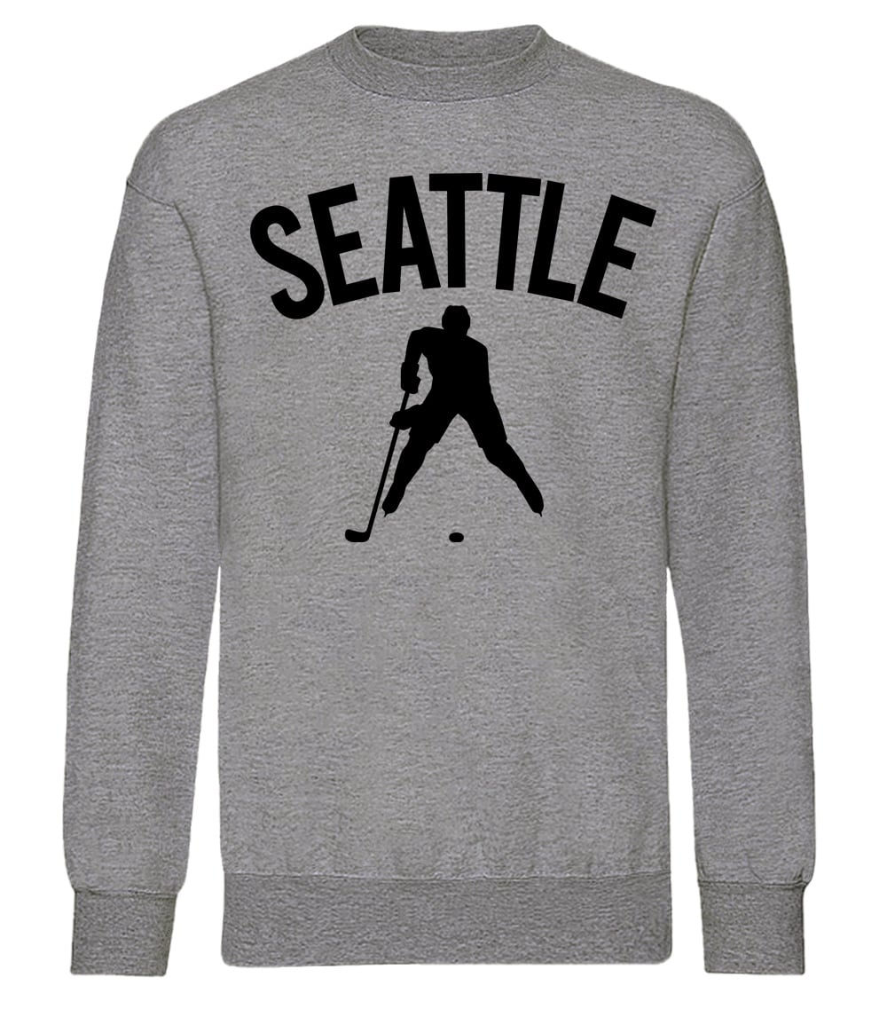 This premium blend sweatshirt proudly displays the hockey loving city of Seattle, USA in combination with our trademark silhouette. The fabric weight is 8.8 ounces and made from 65% ring spun cotton and 35% polyester. Wash on cold and air dry.