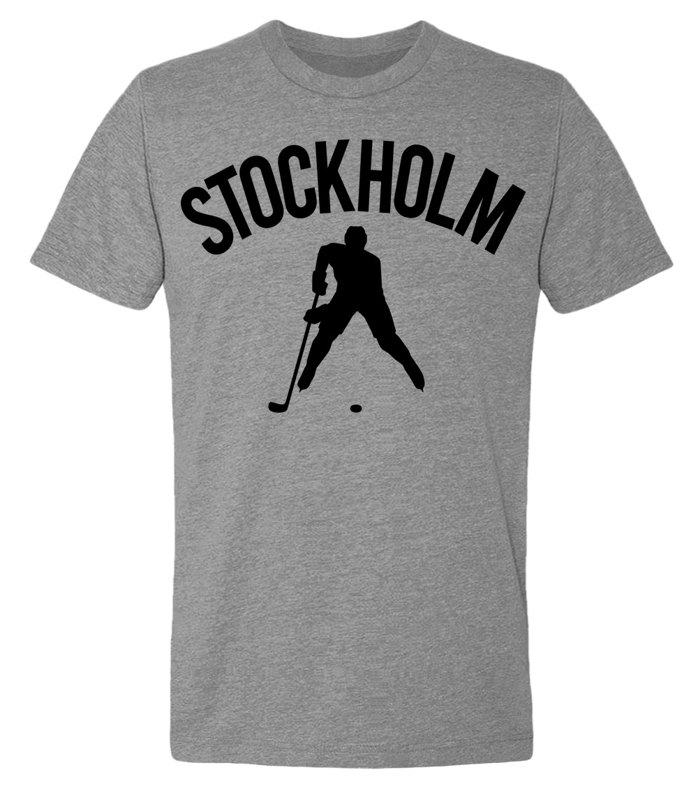 This premium tri-blend short sleeve shirt proudly displays the hockey loving city of Stockholm, SWEDEN in combination with our trademark silhouette. The fabric weight is 4.5 ounces and made from 25% ring spun cotton, 25% rayon, and 50% polyester. Wash on cold and air dry.